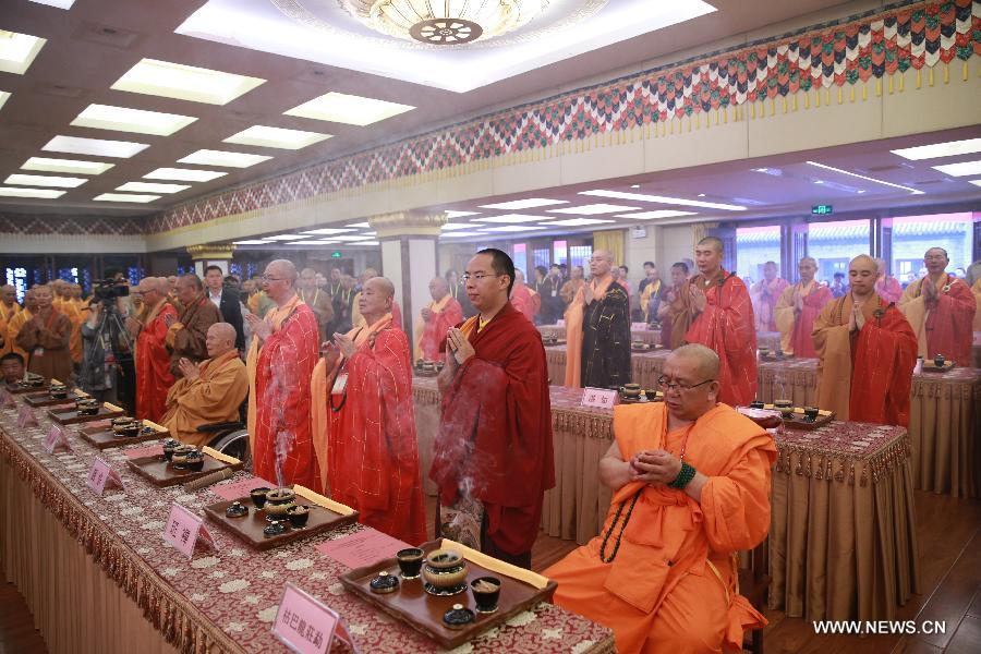 Buddhists hold the praying ceremony at Longquan temple in Beijing, capital of China, Sept. 4, 2015. Religious circles in China on Friday held praying and various activities to commemorate the 70th anniversary of the victory of the Chinese People's War of Resistance Against Japanese Aggression and the World Anti-Fascist War. (Xinhua/Ding Haitao)