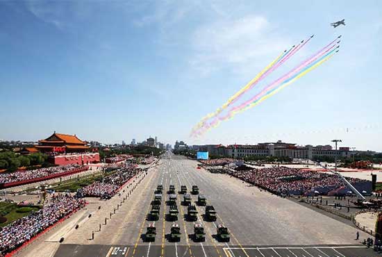 Military aircraft perform during the military parade marking the 70th anniversary of the victory of the War of Resistance against Japanese Aggression and the World Anti-Fascist War, in Beijing, Sept 3, 2015. (Photo from chinadaily.com.cn)