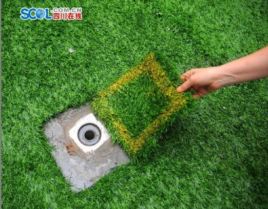 The floor drain to collect rainwater under the lawn.(Photo/scol.com.cn)