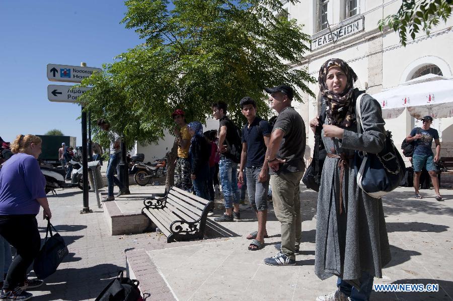 Syrian immigrants wait for vehicles to send them to a police station for registration in Vathy on Samos Island ofGreeceAug. 18, 2015. About 156,000 immigrants have entered Greece in the first seven months of 2015, increasing fivefold over the same period in 2014, according to the latest official data from Greek Police. The overwhelming majority are 89,000 Syrians and 32,000 Afghans fleeing war-torn regions. (Xinhua/Liu Yongqiu)