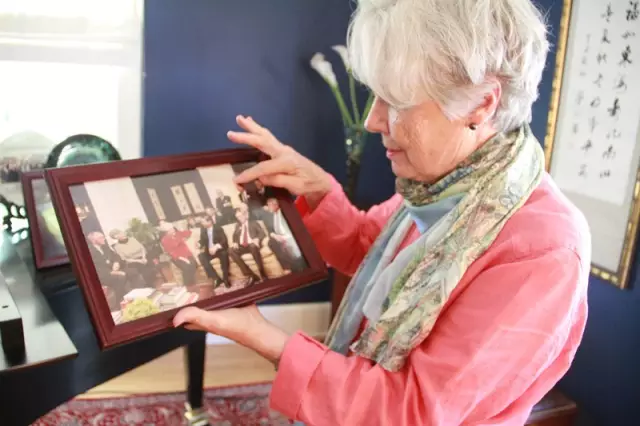 Madam Sarah Lande shows photos of President Xi's visit in 2012 at Lande's house. (Photo: Liao Zhengjun/People's Daily)