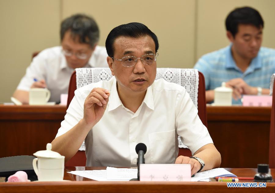 Chinese Premier Li Keqiangpresides over a meeting on the investigation of the blasts that occurred in north China's Tianjin last month, in Beijing, capital of China, Sept. 22, 2015. (Xinhua/Rao Aimin)