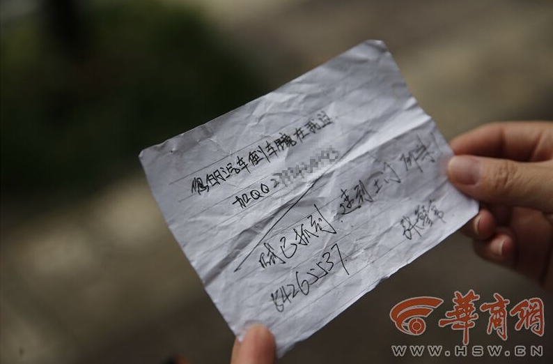 A piece of paper says "Your wing mirrors are in my hands. Please add me on QQ (social media platform).Right below the words written by the thief, the police had added, "The thief has been caught. Please come to us to get your mirrors." (Photo/hsw.cn)
