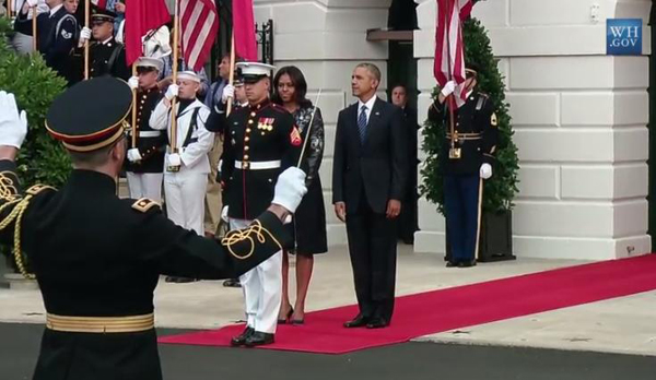 US President Barack Obama and First Lady Michelle Obama prepare for welcoming Chinese President Xi Jinping and First Lady Peng Liyuan at the White House in Washington September 25, 2015. [Photo/www.whithouse.gov]