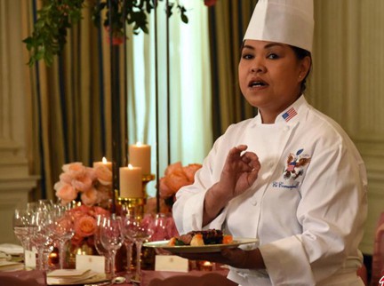 For the dinner, Guest chef Anita Lo, a Chinese-American chef and former contestant on reality show Top Chef, helped craft the menu along with White House executive chef Cris Comerford and White House executive pastry chef Susan Morrison.