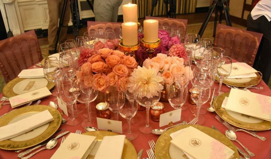 The dinner will be held in the East Room where tables will be topped with pink tablecloths and roses in several shades of pink, reflecting a central theme of roses, which the White House says demonstrates "a deep respect for both Chinese and American architecture and landscapes."