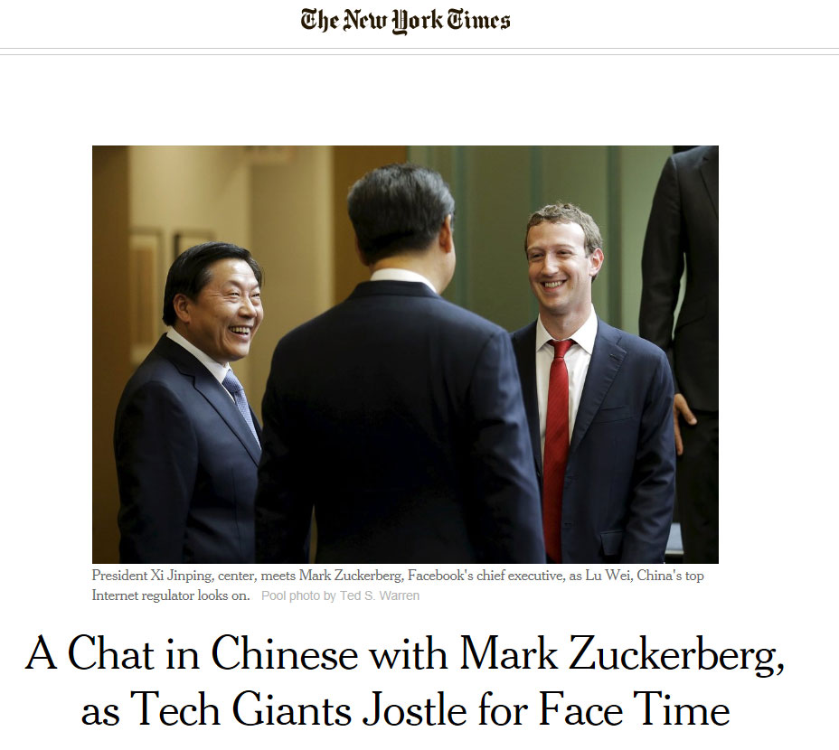 New York Times: A Chat in Chinese with Mark Zuckerberg, as Tech Giants Jostle for Face Time