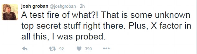 UFO: Josh Groban also saw the light in the sky and wondered if it could be the beginning of an alien invasion.