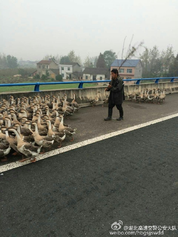1300 geese strolled on highway in Hubei, blocking traffic (3)