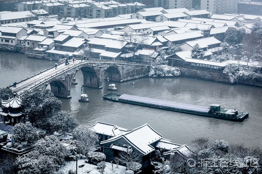 The Gongchen Bridge was originally built in 1631, then rebuilt in the 1880s. It is 98 meters long and reaches a height of 16 meters above the canal. The area around the bridge was originally an industrial area, but fell into decline in the 1990s. It has now been rejuvenated as a cultural quarter with museums and artists' studios, and is popular with tourists. (Photo/Zjol.com.cn)