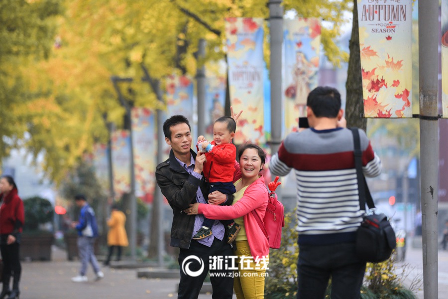 Recently the gingko trees along the West Lake have turned golden. Many tourists come to take photos of this tranquil scenery. (Photo/Zjol.com.cn)