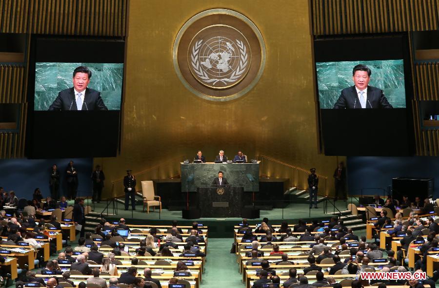 Chinese President Xi Jinping addresses the annual high-level general debate of the 70th session of the United Nations General Assembly at the UN headquarters in New York, the United States, Sept. 28, 2015. (Xinhua/Pang Xinglei)