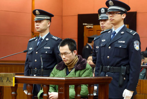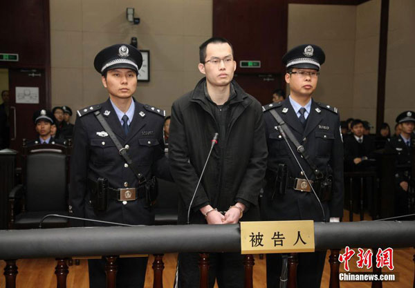 A file photo from Jan. 8 shows Lin Senhao in court when his appeal against a death sentence for murdering his roommate at Fudan University in Shanghai on April Fools' Day in 2013 was rejected. Lin's lawyers said they will appeal the verdict at the Supreme People's Court. [Photo:Xinhua]