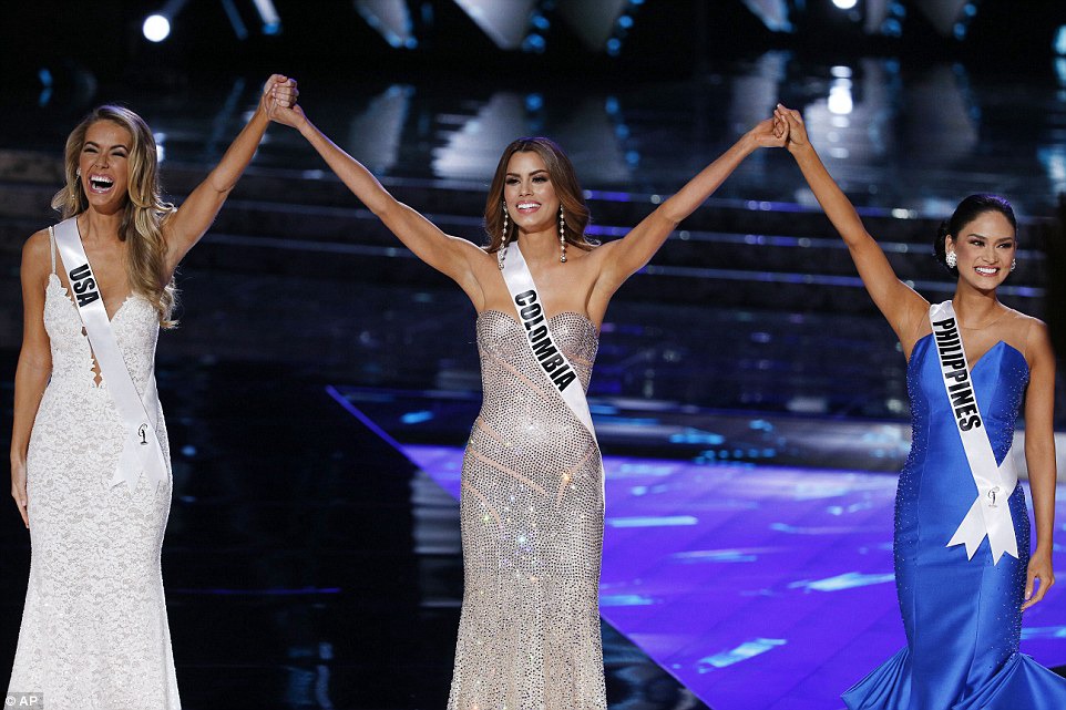 After they made it to the top three spots Harvey revealed to the women that their fellow competitors were going to help decide who would be named Miss Universe 2015