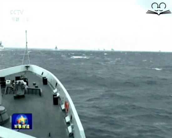 Frigates, submarines, early-warning aircrafts, fighter jets and other types of military vessels from the Navy's North Sea, East Sea and South Sea fleets travel a long distance and participate in a massive combat exercise in the South China Sea last Wednesday.(CCTV screenshot)