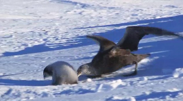 As spring arrives, the better weather brings new dangers in the form of petrels - scavenging birds with wingspans of up to 7ft - which prey on isolated chicks. Snow Chick is an obvious target. Now it's up to the maiden aunts to keep the little ones safe while the parents are away looking for food. Luckily, Snow Chick's soft plumage is starting to moult - so an attacker gets only a mouthful of fluff. It gives the chick a chance to dodge behind his child-minders in a deadly game of hide-and-seek, which ends when the predator goes in search of easier scraps