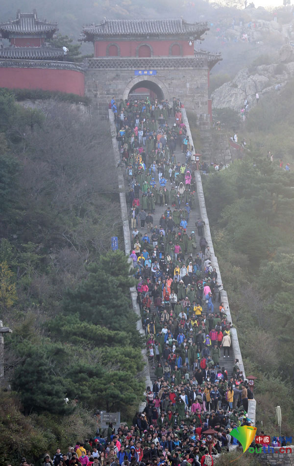 A total of 260,807 tourists visit Mount Tai, a mountain of historical and cultural significance in eastern China’s Shandong province, from Oct. 1 to 4, 2015.(Photo/Youth.cn)