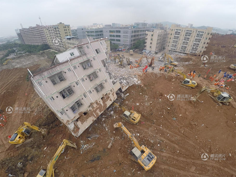 The aerial photos show that hundreds of excavators and heavy-duty machines are working intensively day and night at the landslide site in south China’s Shenzhen on December 22, 2015.