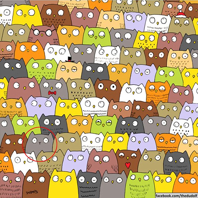 Can you find the cat? After the panda swept the internet, latest illusion challenges you to spot the moggy among dozens of owls