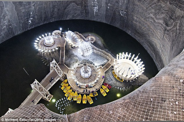 The mines were dug by medieval men to harvest medicinal salt, but today the Salina Turda salt mine complex is a theme park