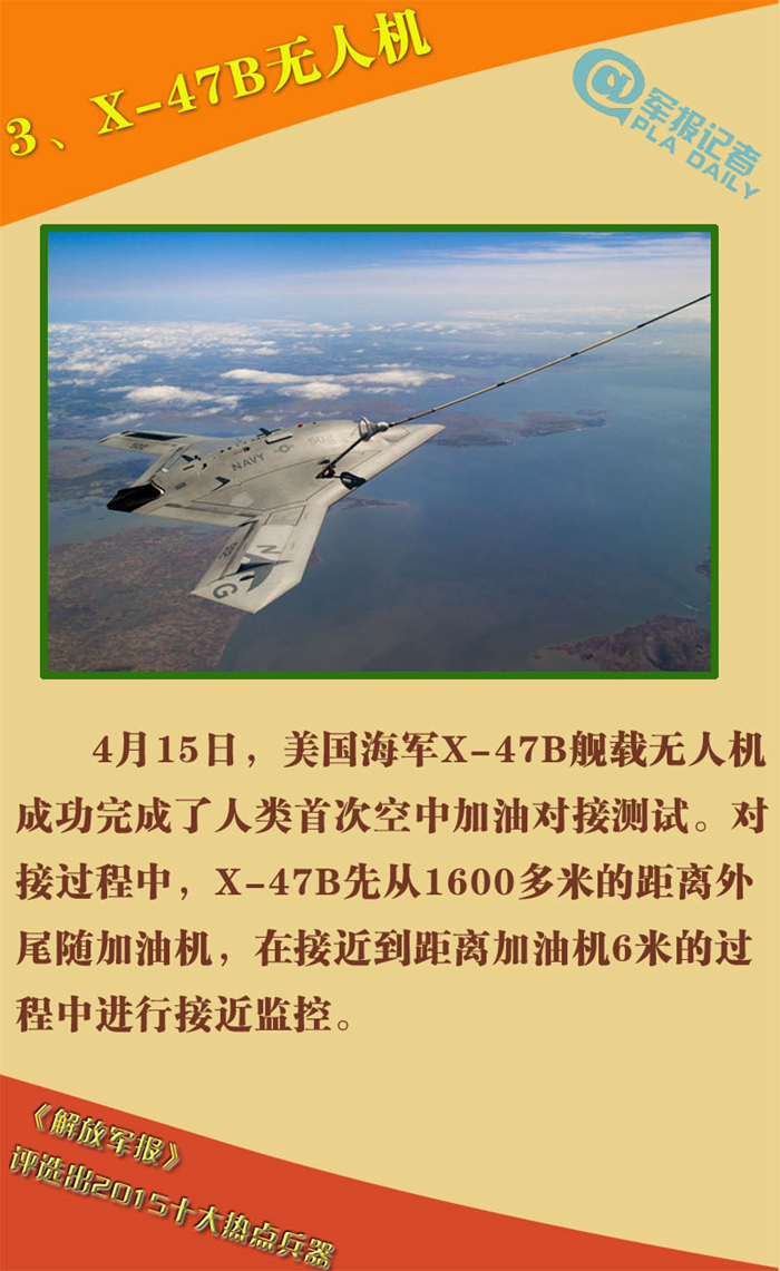 The Northrop Grumman X-47B is a demonstration unmanned combat air vehicle (UCAV) designed for aircraft carrier-based operations. The X-47B is a tailless jet-powered blended-wing-body aircraft capable of semi-autonomous operation and aerial refueling. In April 2015, the X-47B once again made aviation history by successfully conducting the first ever Autonomous Aerial Refueling (AAR) of an unmanned aircraft.