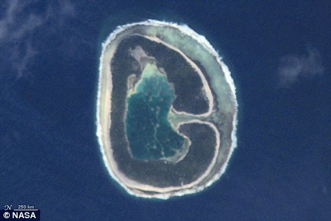 'G': This image of Pinaki Island was captured by astronauts on the International Space Station (left). 'H': The Operational Land Imager on Landsat 8 acquired this image of rivers running through colorful ridges in southwestern Kyrgyzstan (right). He asked others to let him know if they find anything that looks similar to a letter in the alphabet. ‘Send a link to what you’ve found, and explain what letter or other typographical mark you think you see'
