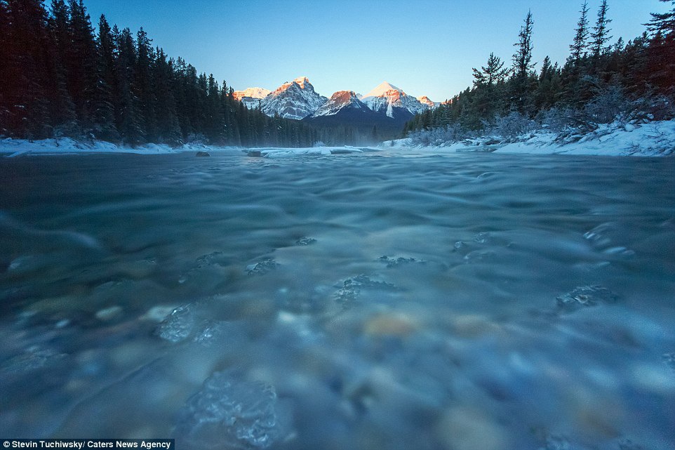 Some of his favourite places to visit, Stevin said, are the likes of national and provincial parks - pictured is Bow River in Banff National Park
