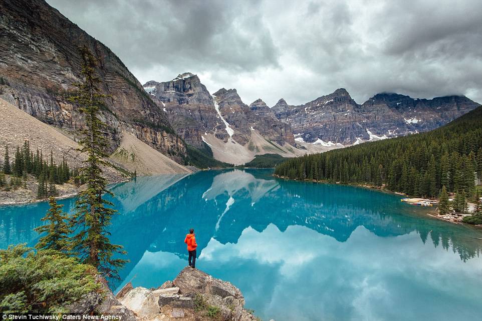 The photographer uploads images to his social media platforms, which have gained more than 100,000 followers (pictured, Moraine Lake)