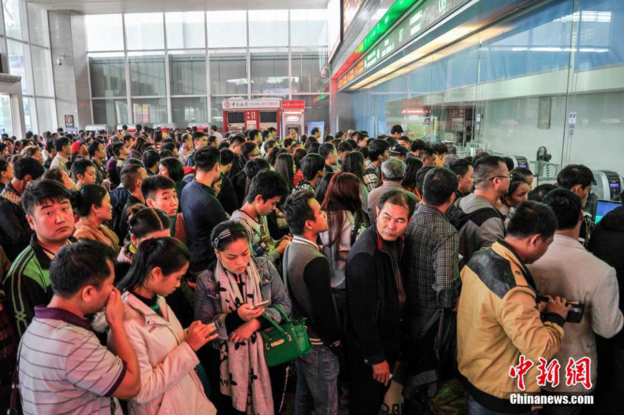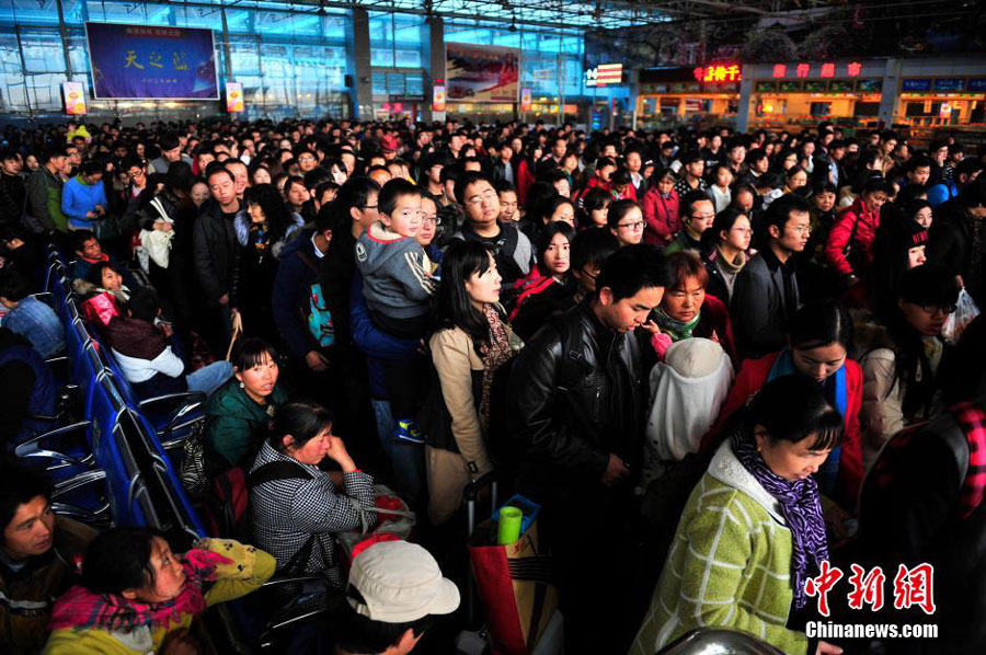 Passengers wait for trains at a railway station in Yunnan's capital, Kunming on January 1, 2016. [Photo: Chinanews.com]