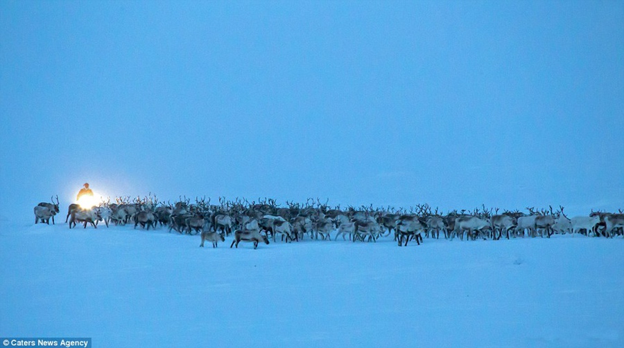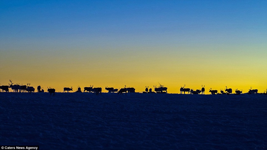 Where's Rudolf? While families across the country took down their festive decorations, the herd made its laborious way across the frozen plains to cross the Norwegian-Finnish border