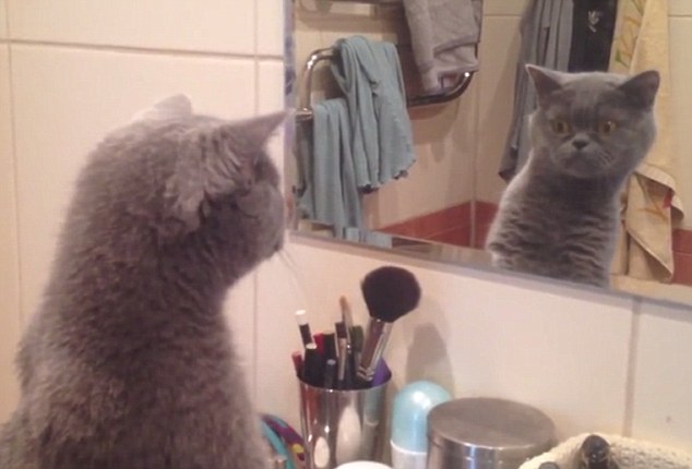 Purr so vain! Curious cat can't help but admire his own reflection after catching it in the mirror (2)