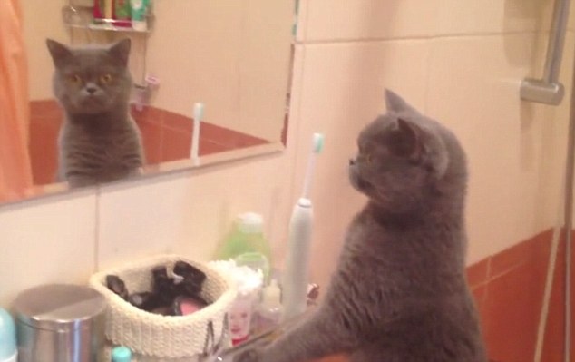 Look at me! A handsome cat named Caesar can't help but admire his own reflection - but who could blame him?