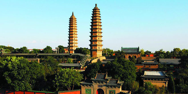 Built in the Ming Dynasty, Twin pagodas in Twin Pagoda Temple, officially known as Yongzuo Temple in Taiyuan, north China's Shanxi province, are the tallest set of twin pagodas in China. They are both eight-cornered, with the lowest floor being comparatively taller than the rest, the size of the upper floors progressively decreasing.
