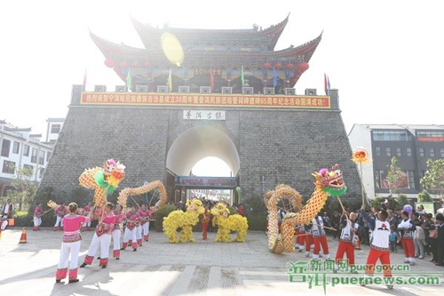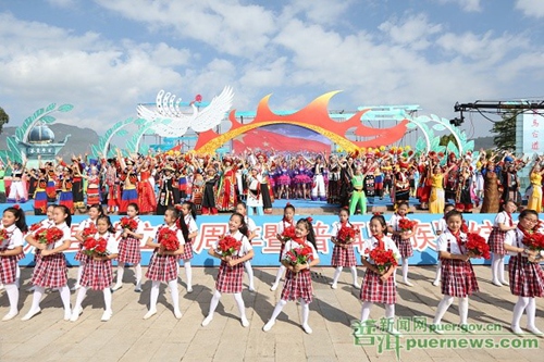 On December 27, 2015, the Conference Marking the 65th Anniversary of "the Monument to the National Unity Oath" & the 30th Anniversary of Ning'er Hani and Yi Autonomous County took place at Shuiwan Park Square, Ning'er County, Pu'er. 3,600 people of all ethnic groups got together, sang and danced in celebration of the anniversaries.
