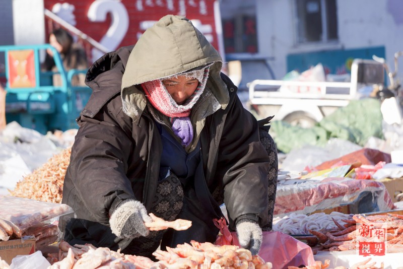 Photo taken on Jan. 21, 2016 shows a peddler stalls at roadside in Genhe, north China's Inner Mongolia Autonomous Region. (Xinhua/Zou Jianpu)