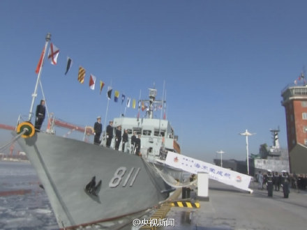 A new hunt-class minesweeper named Rongcheng, designed and made by China, begun service in the People’s Liberation Army on Monday in Dalian city, northeast China’s Liaoning Province. A naming and flag-giving ceremony was held the same day.