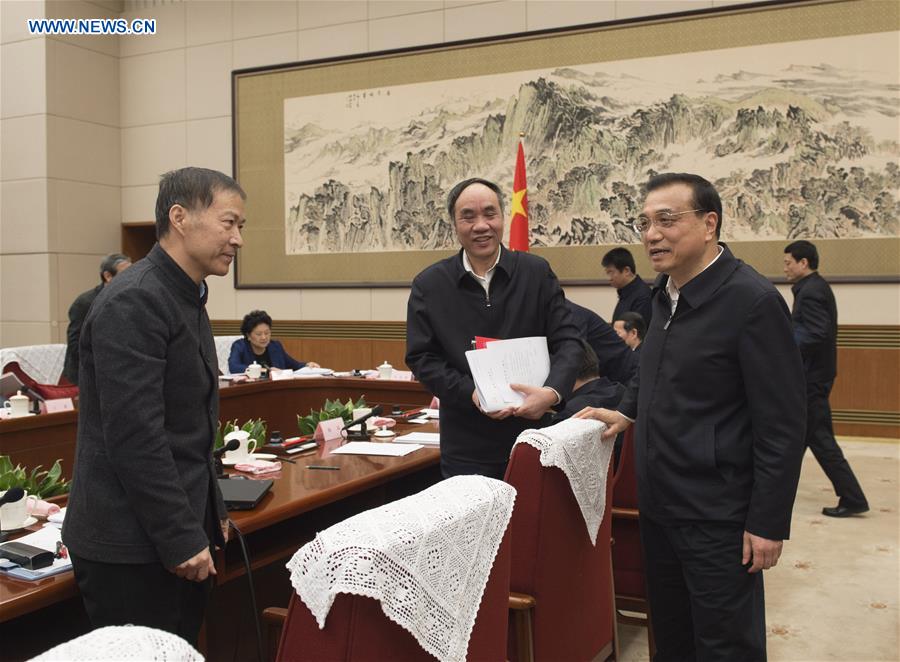 Chinese Premier Li Keqiang (R front) attends a symposium to solicit opinions on the draft of the annual government work report and the country's 13th Five-Year Plan from leaders of non-Communist political parties, officials of the All-China Federation of Industry and Commerce and prominent figures without party affiliation in Beijing, capital of China, Jan. 25, 2016. Li will deliver the final work report at the annual session of the National People's Congress in March. [Photo: Xinhua/Li Xueren]