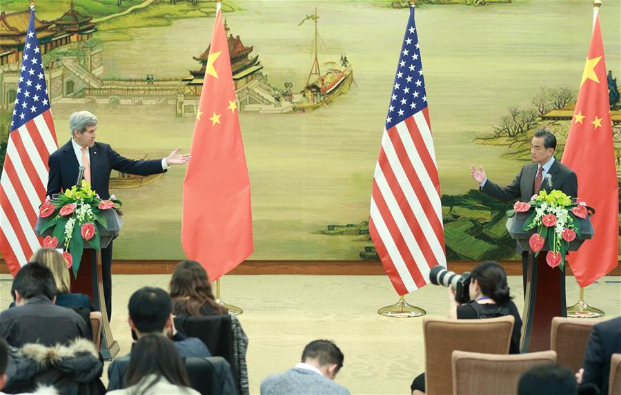 Chinese Foreign Minister Wang Yi (R) and U.S. Secretary of State John Kerry attend a joint press conference after their talks in Beijing, capital of China, Jan. 27, 2016. (Xinhua/Ding Haitao)