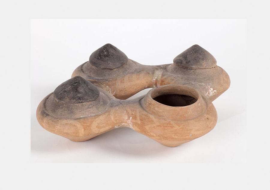 Pottery bowls with lids are among the items on display during the exhibition "Treasures of Romania" at National Museum of China in Beijing, on Jan 28, 2016. [Photo/National Museum of China]