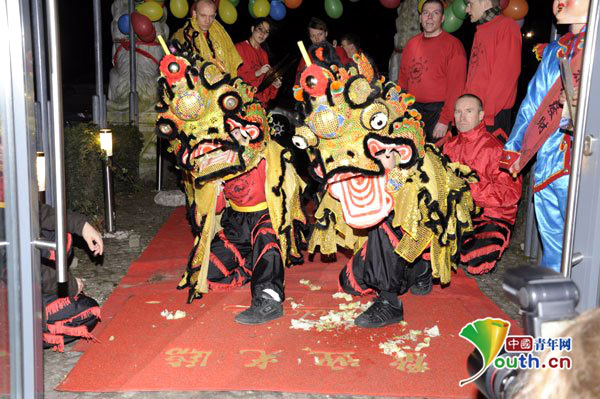 Local people perform the lion dance to cerebrate the New Year. (Photo provided by Wu Xiaowang)