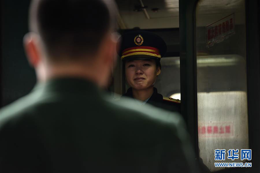 Pan gazes at his wife while the train departs from the station in south China's Guangdong Province on Feb. 3, 2016. [Photo: Xinhua]