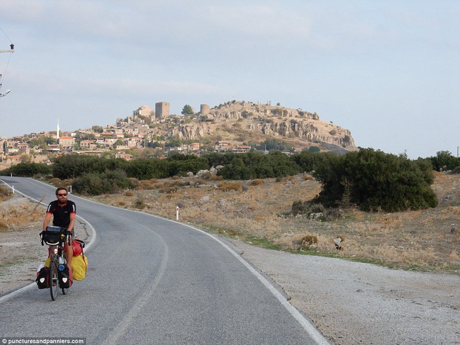 On the road again! Andre, pictured, loads up his bike for the ride to Assos, a small historical town on the Turkish Aegean Coast