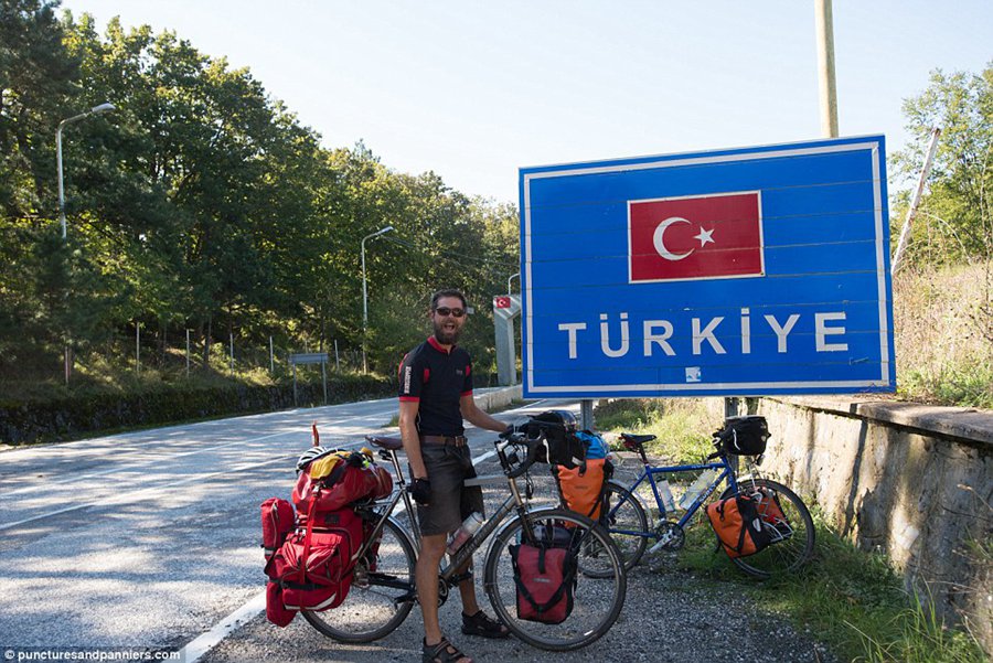 Here, Claire snapped a quick photo of Andre as the two passed through the border of Bulgaria to Turkey