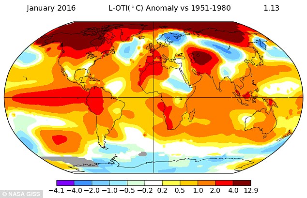 Nasa said January 2016 was 2.03°F (1.13°C) above normal.