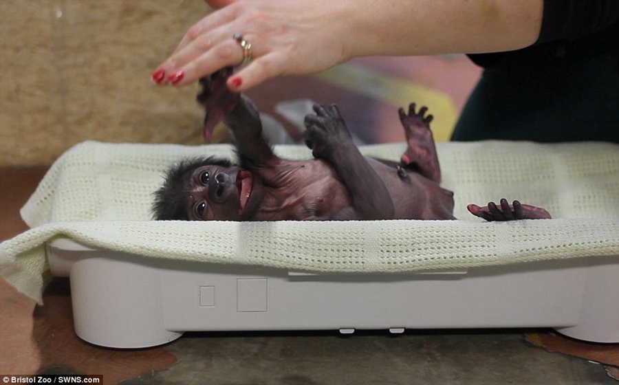 It is the first time that an infact has survived the procedure. The Western lowland gorilla is pictured shortly after the C-section