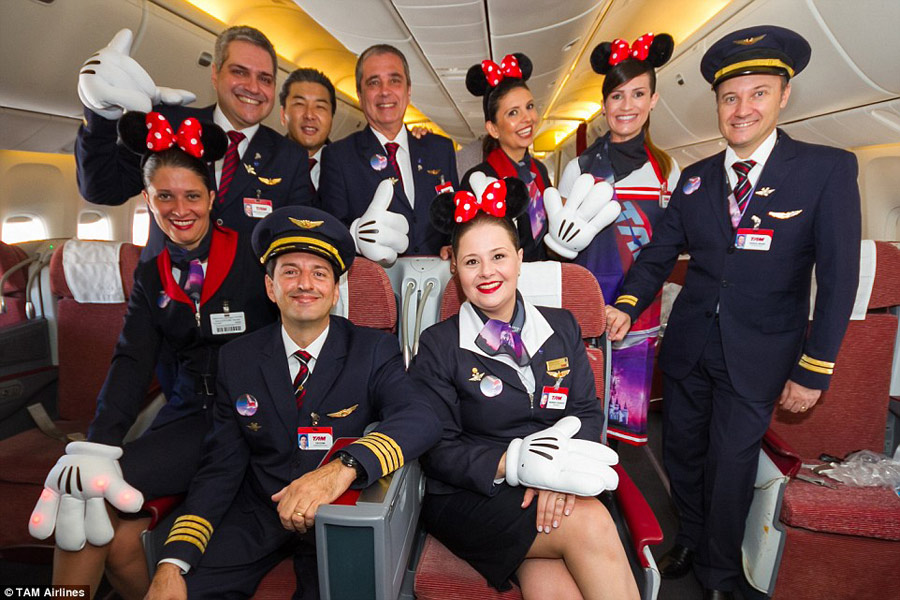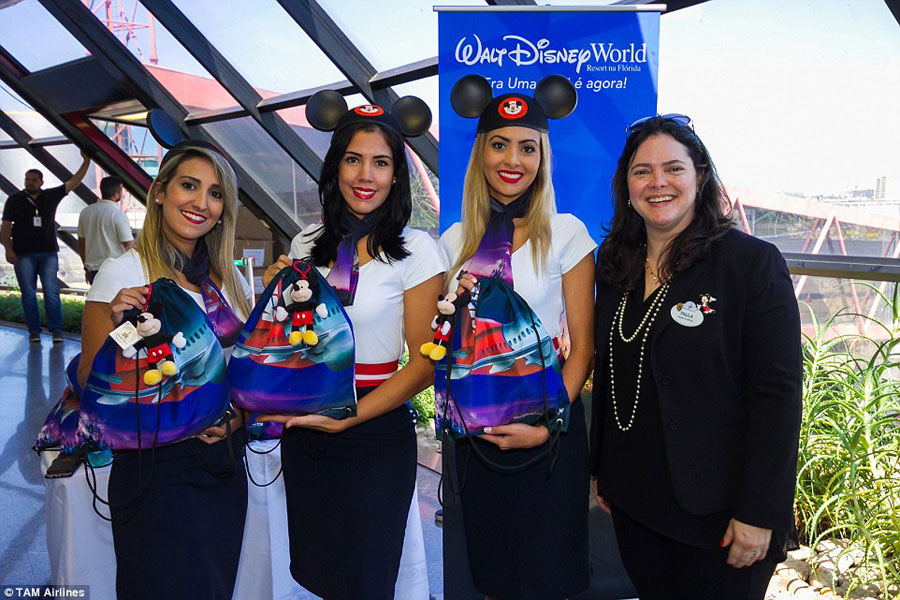 TAM passengers will be immersed in the Disney experience as soon as they set foot on board with the airline saying there will be a themed service, and special elements in the flight attendants' uniforms.