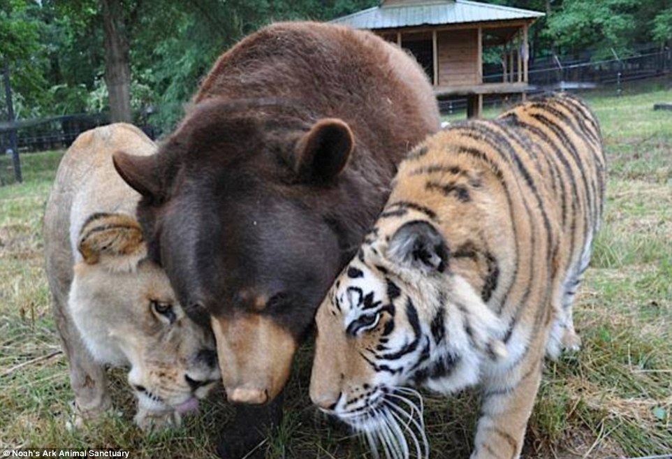 A lion, tiger and bear cub have developed the most unlikely friendship at an animal shelter in Georgia in the United States.