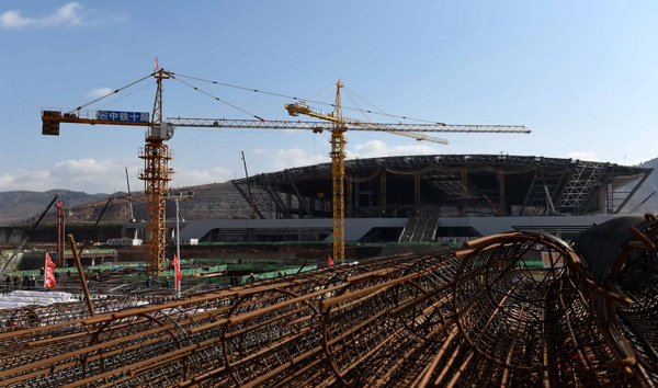 Workers work at the construction site in Kunming South Railway Station on March 1. (Photo/Xinhua)