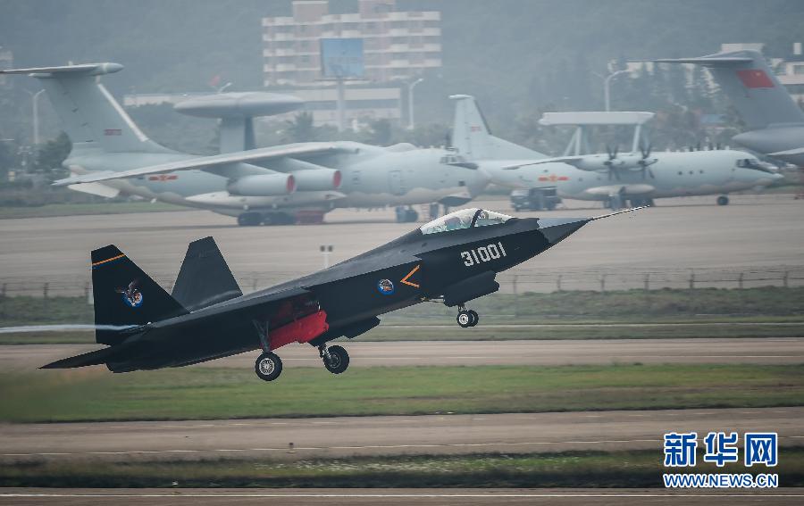 A J-31 stealth fighter has its test flight ahead of the 10th China International Aviation and Aerospace Exhibition in Zhuhai, south China's Guangdong Province, Nov. 10, 2014. (Xinhua/Liu Dawei)