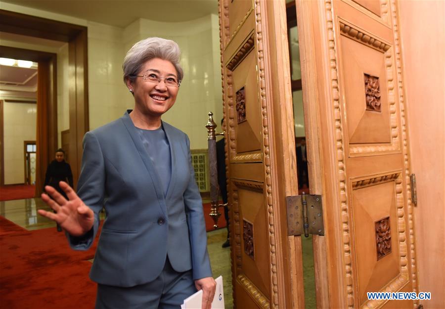 BEIJING, March 4, 2016 -- Fu Ying, spokesperson for the fourth session of China's 12th National People's Congress (NPC), arrives for a press conference on the session at the Great Hall of the People in Beijing, capital of China, March 4, 2016. The fourth session of the 12th NPC is scheduled to open in Beijing on March 5. (Xinhua/Jin Liangkuai)